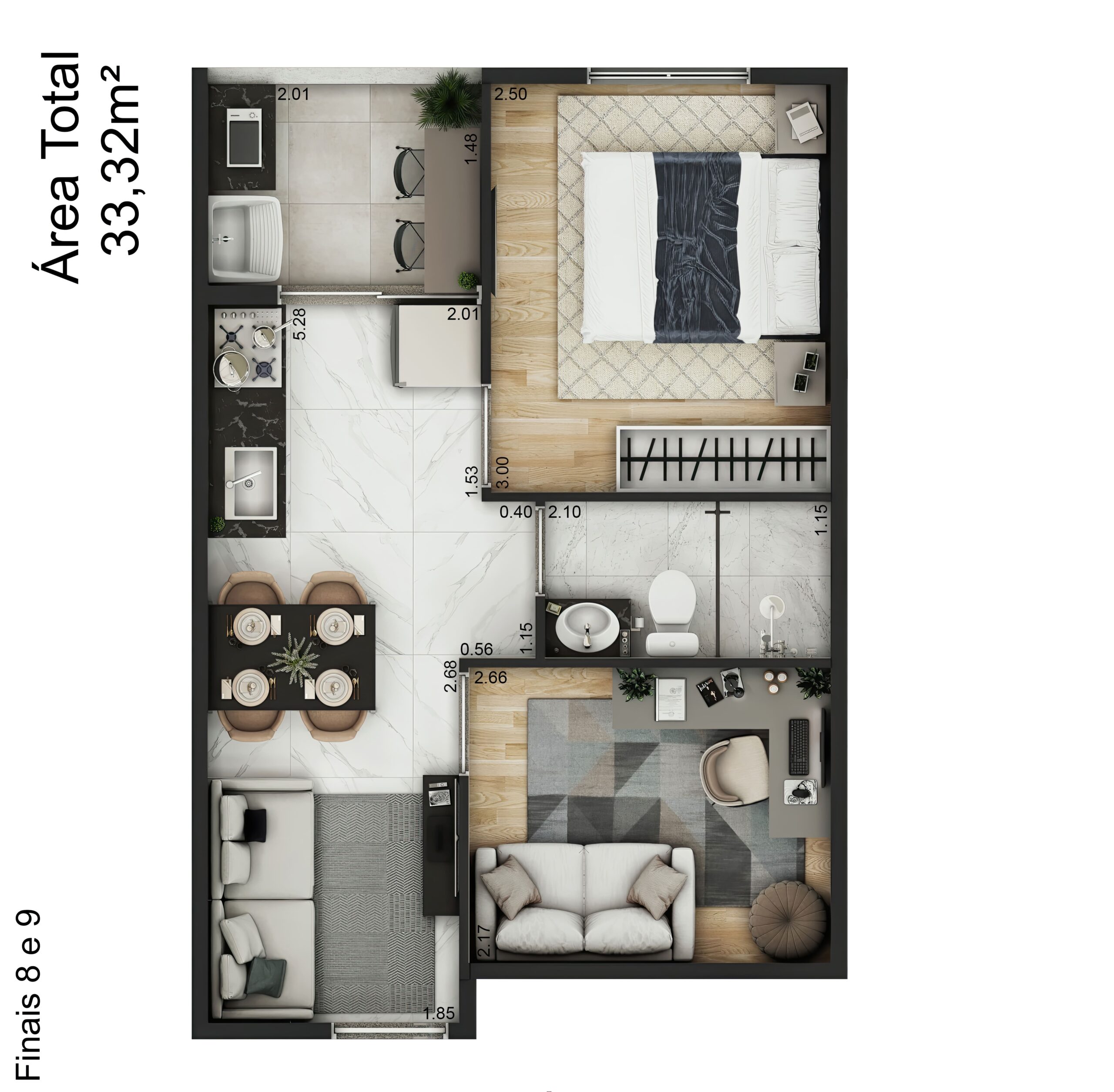 • Tipo De Plantas: 1 Dormitório; 1 Dormitório + Escritório; 2 Dormitórios; Espaços Multiuso.